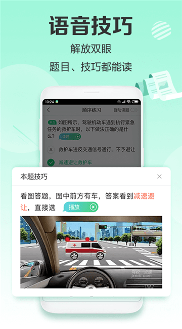 驾校一点通极速版app是一款学车驾考学习备考软件,精编题库,按照顺序练习500道题,让你轻松考过无压力,拥有语音技巧,题目、技巧都能读,同时在这里还能进行模考实战练习,模拟真实考试,让你临场也不慌,快来小黑游戏下载!