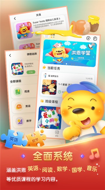 洪恩学堂安卓版涵盖洪恩英语、阅读、数学、国学、音乐等优质课程的学习内容,课程体系科学完善,教学内容全面系统,教学方法先进实用。
