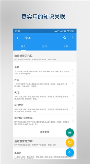 2、拥有穴位、方剂、中药、中成药、艾灸、按摩、有毒动物、手术以及药膳食疗等等十几种分类,里面的知识讲解也非常详细;