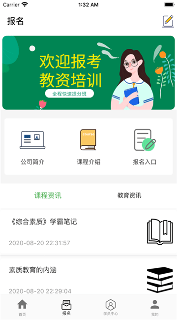 本APP提供资讯浏览、业务办理、在线报名、学习、缴费等功能。学生考勤,成绩查询,管理员发放考试信息,发布备考经验贴,各项服务一应俱全。还具备业务员对学员的报备管理,班主任对班级的管理,主管,总经理对下级业务员的业务管理。学员从报名到结课,业务员从学员报备到个人业绩的获取全程实现无纸化信息化。