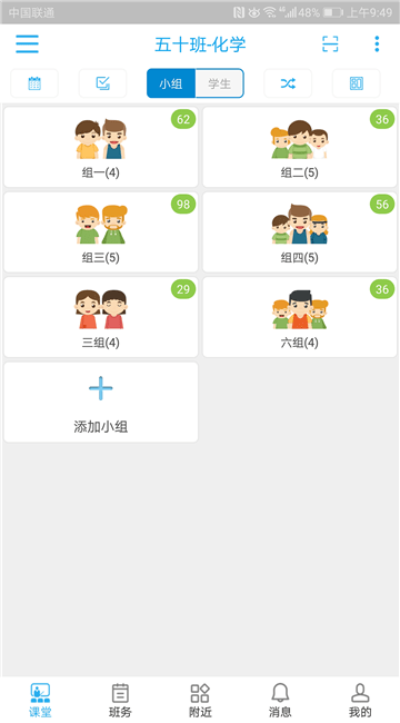 在线添加小组信息,实时查看到小组分组信息;