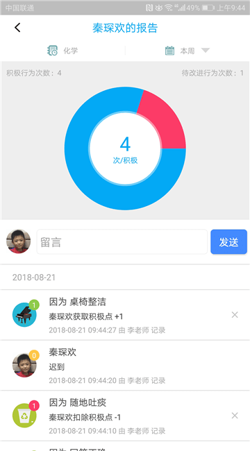 校朋老师端app是一款班级管理平台,教师能够在线管理班级学生,随时查看应用的统计数据,教师根据学生的考勤,可以快速浏览到每一节课程中学生的表现情况,课程包含了学习、劳卫、文体、品德、实践等方面的统计,让学生的所有表现都掌握在自己的手中,这里能够根据学生的考勤和课堂的表现,在线留言和评论,有利于完善学生的报告统计;你还可查看到全部学生的考勤状况,快速发布出勤报告,立即获得相关的内容,同时还能够记录所有的小组数据统计,让课堂的表现更清楚。