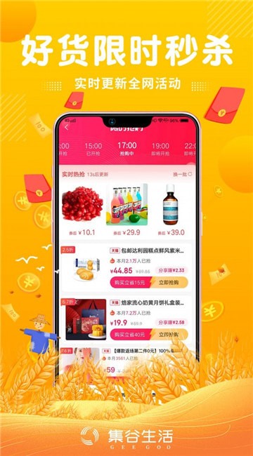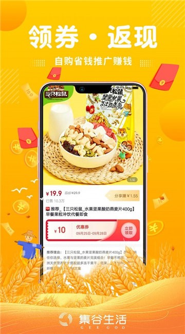 集谷生活安卓版是一款好用省钱的手机购物软件,平台内拥有海量优质商品资源,丰富好物实时优惠,更有超多省钱福利等你来发现,感兴趣的朋友就来下载体验吧!