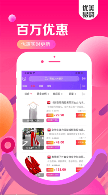 优美易购app是一款非常值得推荐的万能省钱购物商城软件。优美易购app上的所有商品均是来自国内大型购物平台质量问题大家不用担心。优美易购app价格低廉,购物简直不要太划算!