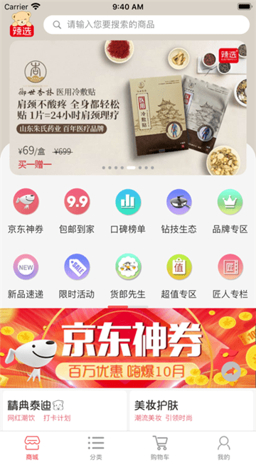3、商品板块:不同专区,优惠券领不停,让用户购物一步到位;