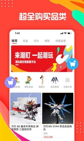 潮町app是一款潮流时尚购物社区,专为模型玩具爱好者打造的线上购物商城,汇集海量热门时尚模型商品,质量正品价格实惠,有机会还能淘到绝版的心仪模型小物件哦,感兴趣的朋友就来下载体验吧!