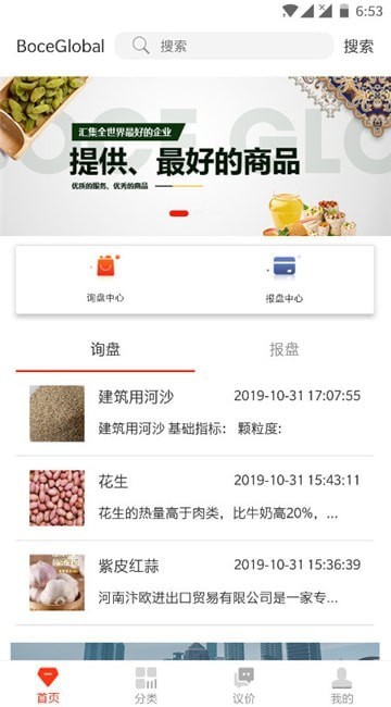 4、在线询盘报盘,随时可以进入询盘中心、报盘中心进行交易;