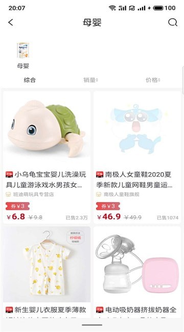 3、可以根据销量以及价格筛选商品,根据需求自由挑选所需商品;