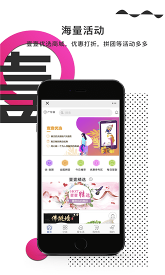 2.海量商品,在线优惠打折、拼团活动,为您既购物又省钱。