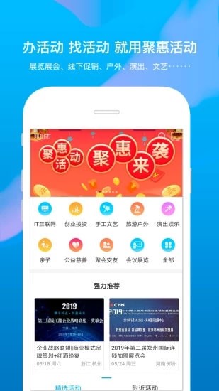 聚惠活动是一款汇聚了许多活动的平台。在这里,你既可以参加各种各样有趣的活动,也能一键发布你自己的活动,吸引大家来参加。平台功能强大,有需要的朋友快来下载试试看吧!