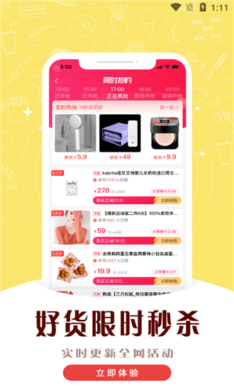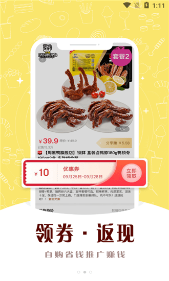 非常给力的网购省钱神器,随时可以在线领取全网优惠券,买什么都可以直接省钱,而且下单还能有返现,省钱不是一点点,每天都有限时秒杀商品,价格低到超乎你想象,还可以将平台的优惠信息分享给好友,只要下单就可以获得奖励。