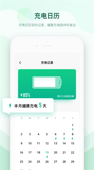 3、自动的记录用户每天对手机充电的情况,您可以查看充电的日历;