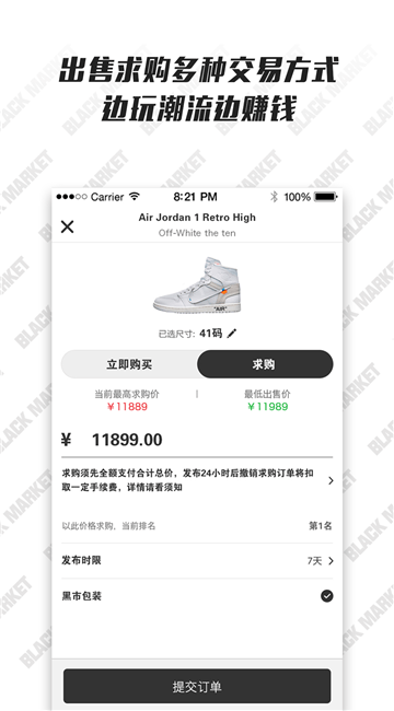 潮流黑市app是一款高端潮流购物软件,这里汇集了海量球鞋、服饰、配饰、潮玩、数码以及美妆的等资讯,可随时在线查看,了解众多好物信息,便于用户能选择性进行购物。所有为用户提供的商品都是一手货源,从厂家直接拿货发送,让没有中间商,销售更加的有效。app还有在线发布求购、发布商品的功能,每一位用户都能自行编辑求购信息发布,以便能及时进行购物。商家用户可以在线发布上,以便能及时为消费者推送,并能及时促成交易。
