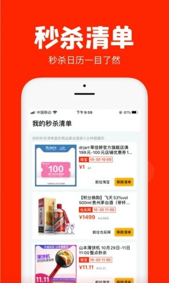 想要的东西太多?怕闹钟太多分不清?老是整点忘记秒杀?用我的秒杀清单轻松搞定!开抢前5分钟还会提醒你!