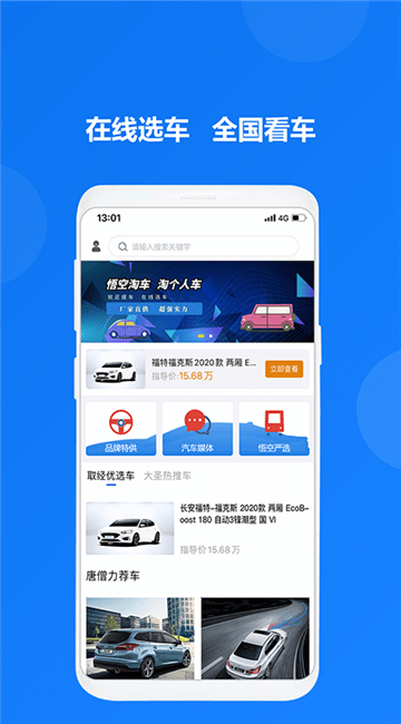 悟空淘车app是一款实用优惠的线上选车软件,提供新车、二手车等多种购物车服务,汇集海量高品质汽车资源,在线就能看遍全国各地的汽车信息,让你轻松在家足不出户就能买好车,感兴趣的朋友就来下载体验吧!
