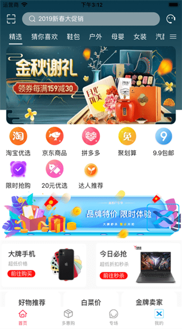 2、好物推荐、白菜价、金牌推荐等专场实时掌握,迅速查看价格;