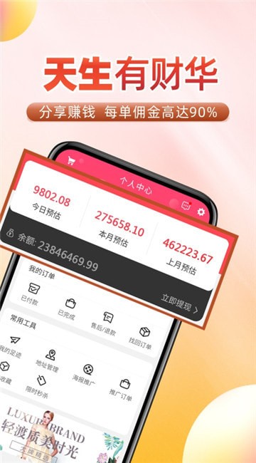4、你可以随时查询账户收益,提现推广赚取的所有收入;