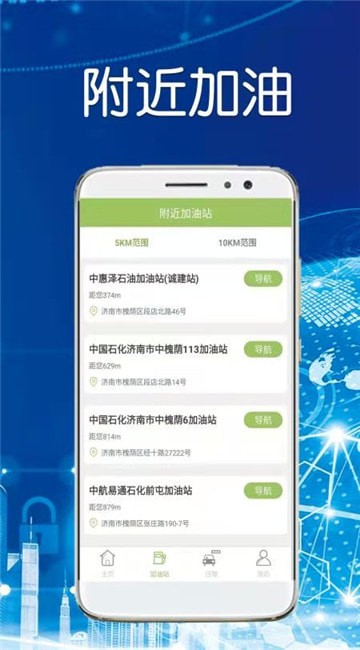 5、附近加油站,就近选择,地图导航;