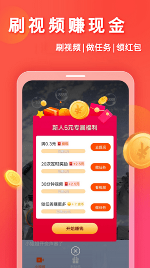 1、赚钱,让你在上面去刷刷视频,完成其中的任务即可轻松的赚取许多的零花钱。