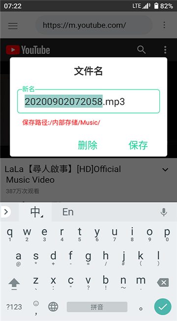 3.当吸音结束时,会有一个对话框,向你询问是保存还是删除,另外你也可以把音频文件更改成你想要的名字。