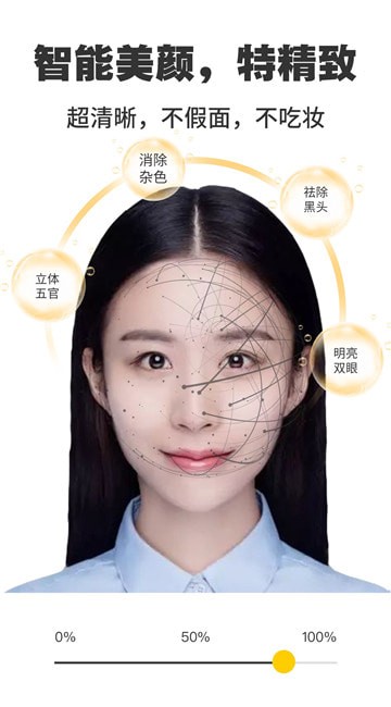 1、轻微的美颜美白功能使证件照美丽自然,再也不用为不会ps而烦恼;