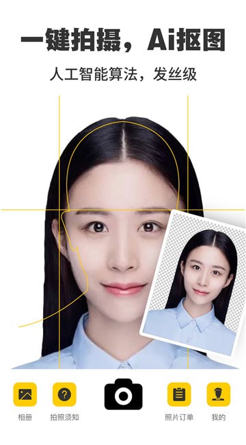 用APP拍摄照片,自动智能抠图,一键更换底色,选择好您要的照片规格,一张符合您要求的证件照就制作出来了!