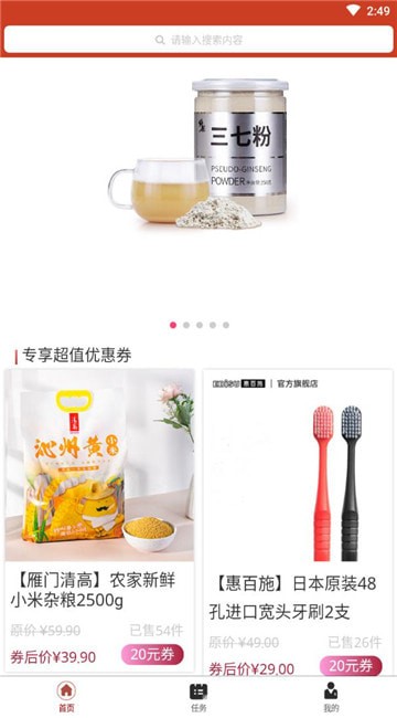 提供信息、产品搜索等功能,一键前往淘宝领取,更可以获得积分,积分越多收益越多。