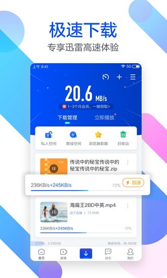 3、开创全新极速,边下载边播放极速,不用等下载完毕,抢先体验视频内容。