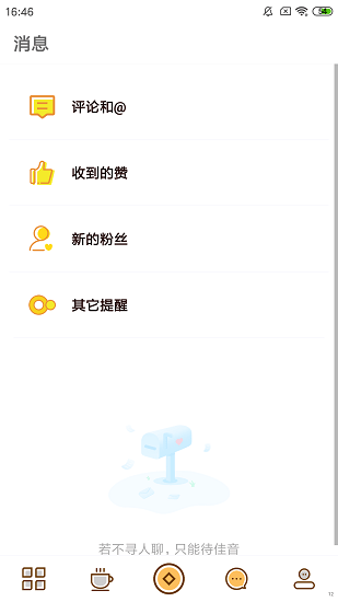 新消息及时提醒,当有人点赞、新粉丝关注和评论、艾特自己的时候可以得到消息提醒;