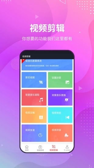 1、视频编辑功能,视频剪切、背景音乐替换、视频倒放等