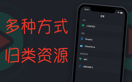 3.多种方式导入视频资源:本地相册导入视频、使用Dropbox授权导入,您还可以使用iCloud Drive导入,通过局域网Wi-Fi导入您的文件,通过USB/USB-C进行导入等更多方式。