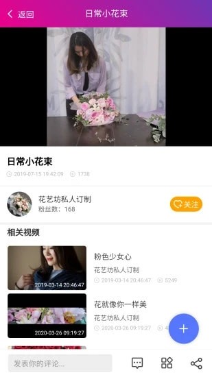 4、关注:关注喜欢的插花老师,软件实时推送老师最新的插花视频给到你观看;