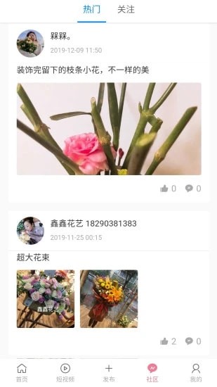 6、专属社区服务,所有用户发布的插花动态都可以在这里观看到,关注喜欢的用户吧;