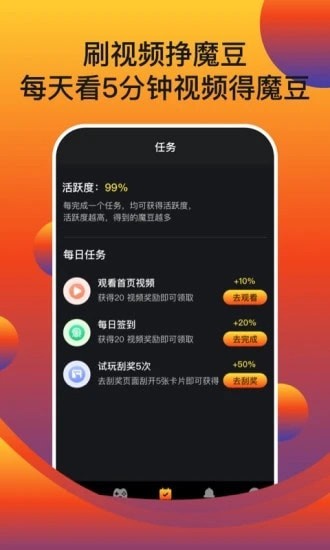 在应用中完成各种任务,也能获得平台的魔豆奖励,每天都能领取;