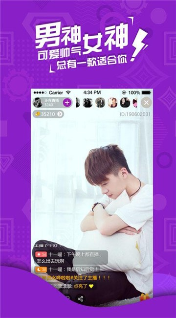 这里美女如云,帅哥云集,知名美女帅哥主播在线直播陪你聊天、唱歌、跳舞,让你不再孤单;才艺达人,颜值担当,风格多样,才艺百变,总有你钟意的一款;多彩的演唱风格,高质量的视频画面,Live般的音效,炫丽丰富的礼物,让你嗨到爆!