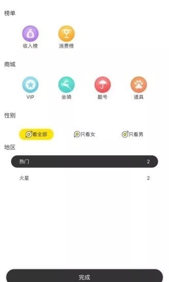 身份标识:通过赠送免费礼物,趣味礼物,中奖幸运礼物……可获得从布衣到神的专属身份标识。