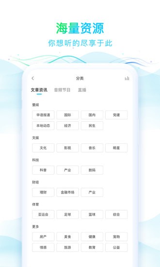 华语之声app是为用户打造的有声电台平台,平台为您提供了许多的内容,让用户可以在线听新闻、听书、听歌、学生知识等等,你就可以享受到非常优质的娱乐生活了。