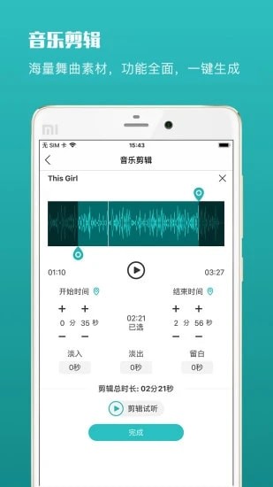 蓝舞者app呈现出了更丰富的内容,满足舞者的需求,海量舞曲素材任意下载和使用,功能全面,一键即可生成音频,任意选择音乐即可剪辑,自由选择开始和结束的时间,随时都可以进行编辑和剪辑,是舞者的练舞神器。