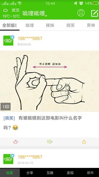 3.社区发帖:男神辣妹搞笑呲哩,发出你的魅力;