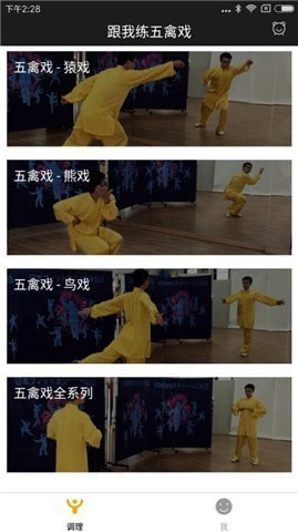 五禽戏教学视频完整版是一款类似健生操的健身软件,软件内集合了科学的健身手段,包含了教学图示,让你能够轻松的学会,另外在健身的时候也会有相应的伴随音乐,让你能够深深的投入之中,让你的注意力更加的集中。