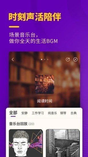 根据猫王收音机特有的场景伴随性,OhPlay猫王妙播围绕用户全天的生活情境,打造了“场景音乐台”的板块,超过300万首歌曲的曲库予以支持,做你全天的生活BGM。