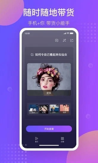 2.主播可随时随地开启直播,线上和用户面对面交流推广商品;
