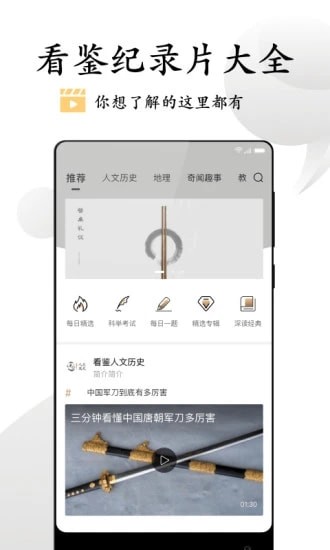 看鉴微视频app由CCTV央视纪录片制作团队出品,每天为您奉上一条视频。当你看厌了百家讲坛、罗辑思维、财经郎眼、晓说等常规节目时,用你不妨下载看鉴视频。订阅每天一期看鉴知识历史地理学习视频,利用碎片时间,扩充认知,终生成长。看看短视频,知识涨不停。