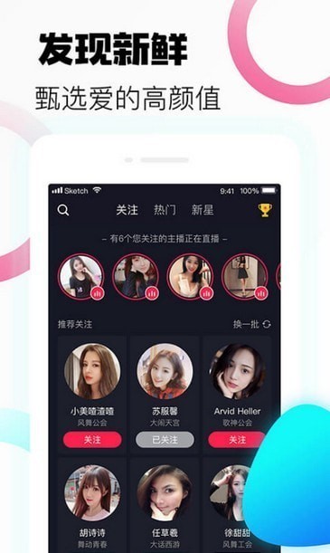 这里美女如云,帅哥云集,知名美女帅哥主播在线直播陪你聊天、唱歌、跳舞,让你不再孤单;才艺达人,颜值担当,风格多样,才艺百变,总有你钟意的一款;多彩的演唱风格,高质量的视频画面,Live般的音效,炫丽丰富的礼物,让你嗨到爆!