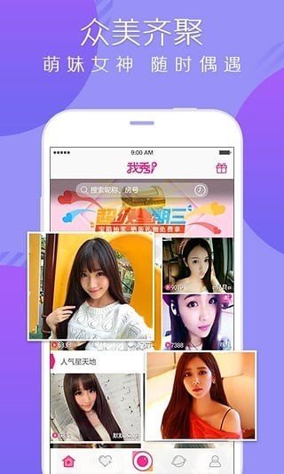 这里美女如云,帅哥云集,知名美女帅哥主播在线直播陪你聊天、唱歌、跳舞,让你不再孤单;才艺达人,颜值担当,风格多样,才艺百变,总有你钟意的一款;多彩的演唱风格,高质量的视频画面,Live般的音效,炫丽丰富的礼物,让你嗨到爆!