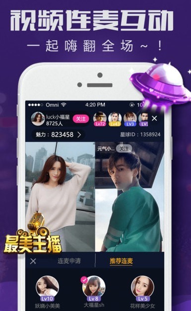 流畅高画质的真人视频直播画面,Live现场震撼音效,真人视频直播,让你随时随地享受演唱会般超high秀场气氛。看真人视频直播才艺show,听K歌达人激情欢唱,视频聊天,享受超凡视听盛宴。