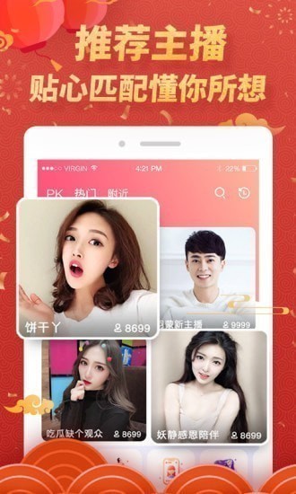 流畅高画质的真人视频直播画面,Live现场震撼音效,真人视频直播,让你随时随地享受演唱会般超high秀场气氛。看真人视频直播才艺show,听K歌达人激情欢唱,视频聊天,享受超凡视听盛宴。