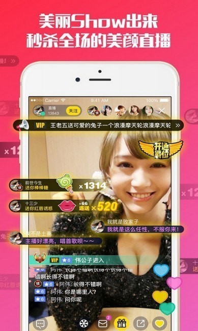 身份标识:通过赠送礼物,在线直播,可获得vip特权标志。