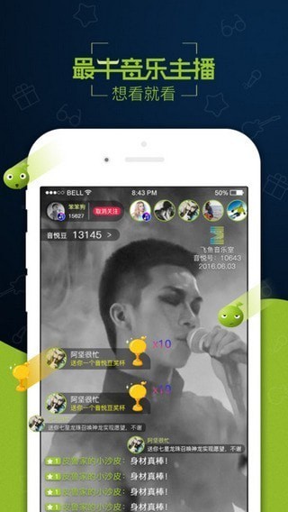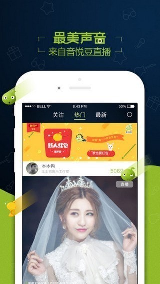 音悦豆app是一款高调颜值的直播软件,是一款达人、潮人的必备应用,音悦豆直播能让你足不出户就能与音乐大咖相遇、一起品味音乐带来的乐趣,还能结交志同道合的朋友,零距离互动分享,拿起你的手机玩转直播!