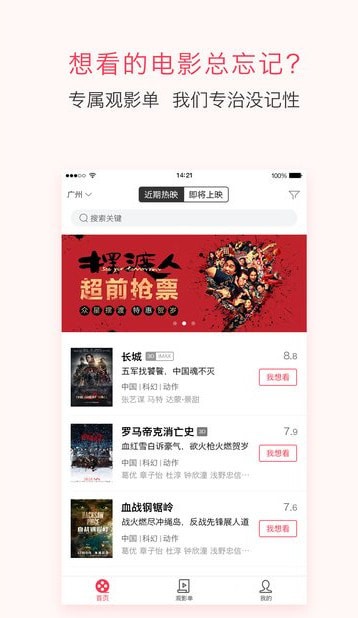 1、里面可以知道最新上映和即将上映的电影,通过标记想看,建立自己的观影单。